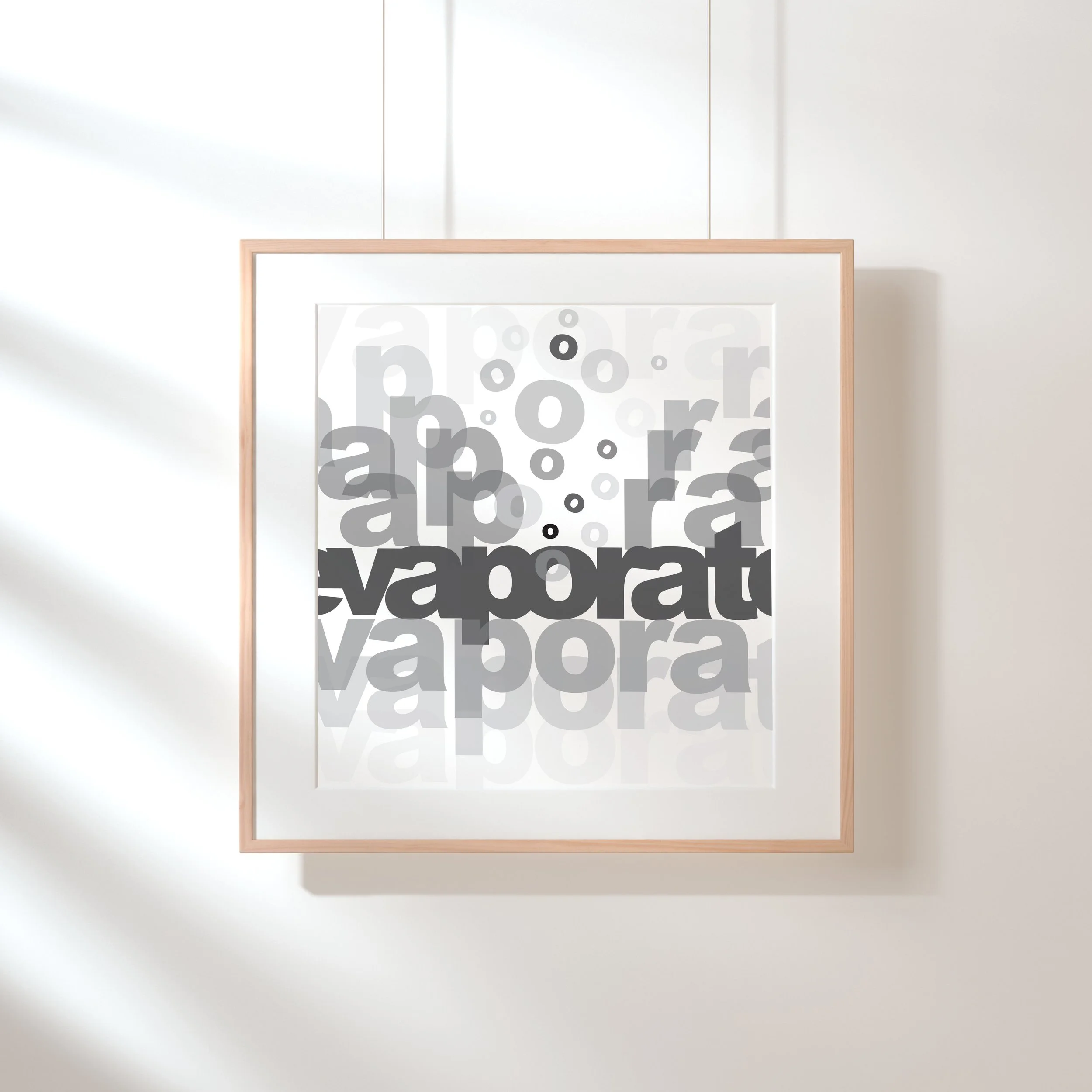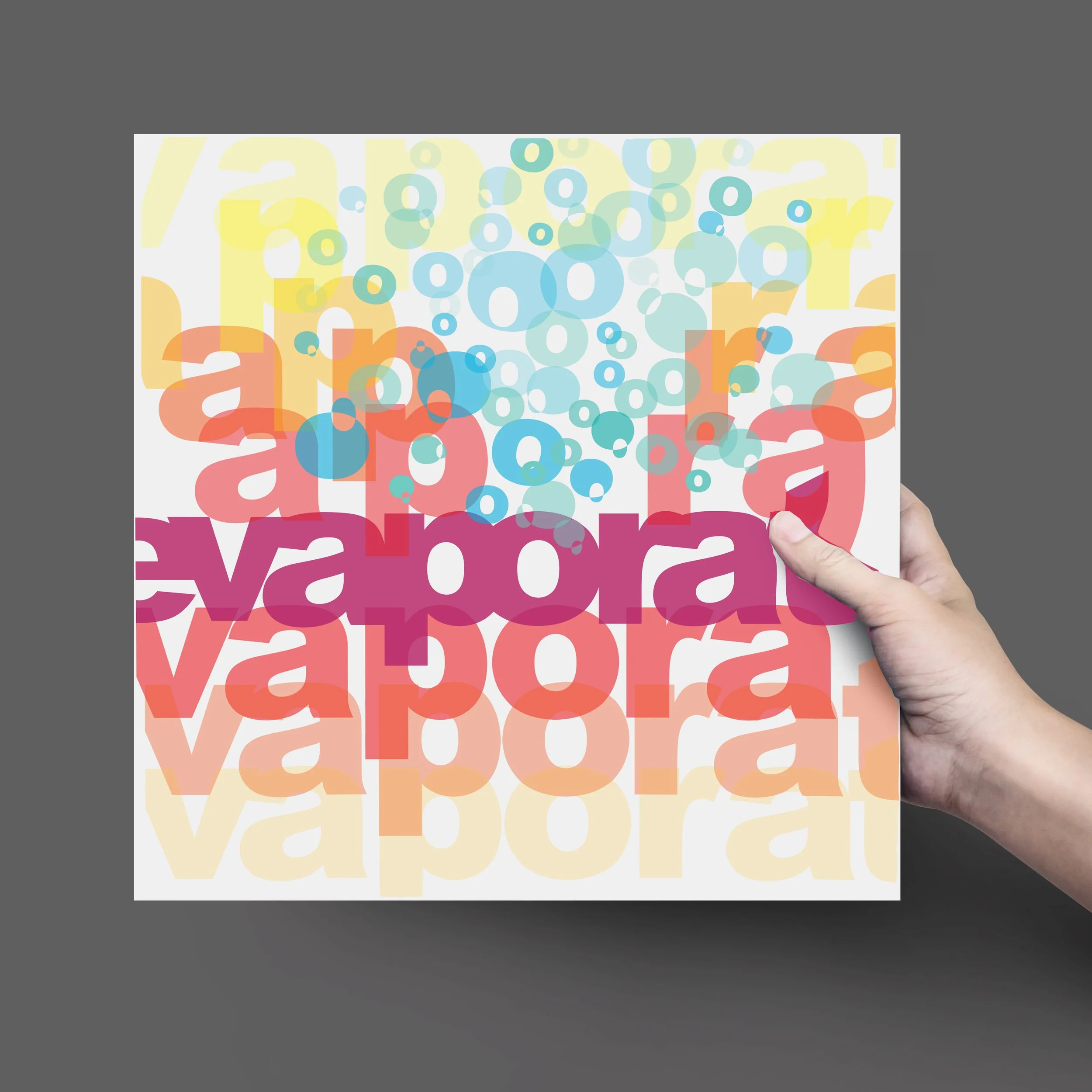As I began my typographic journey, I was tasked with choosing between fifteen captivating words, each awaiting transformation through the art of typography. Among the choices, one word resonated with me deeply, and that word was "evaporate." The word was chosen because it flowed easily as I said it, sparking inspiration in me. I was excited to portray this word in its lively and energetic nature, working to capture this using a mix of vibrant colors and the simple beauty of black and white.